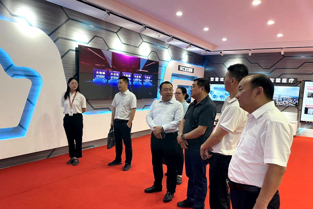 在十堰联通分公司,李岱经理一行参观了中国联通5G应用展厅,展厅中分别展示了近几年中国联通为十堰“智慧城市”的建设发展而研发的“智慧旅游—游仙儿”、“工业大数据中心”、“智慧医疗”、“智慧应急”、“智慧环保”等建设成果。