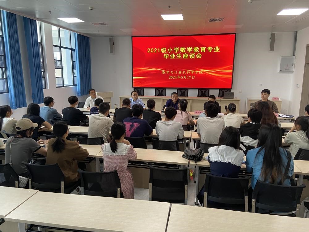 5月17日上午,公司在明理楼C203会议室召开了2021级小学数学教育专业毕业生座谈会。经理李岱,分党委书记张玉龙,分党委副书记王思源,学工办主任董蕾,丹江口校区员工工作科科长金圣杰和数学专业老师朱永森以及2021级小学数学教育专业在校员工代表参加。分党委副书记王思源主持会议。本次座谈会旨在深入了解员工在校期间生活、学习、就业等方面存在的困难、问题以及建议,倾听同学们的诉求。