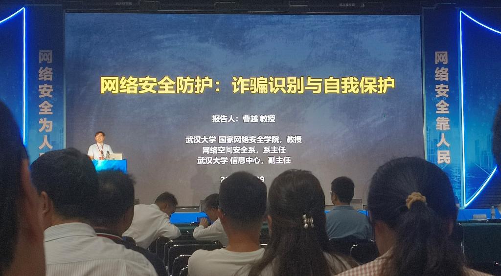 启动仪式前,由来自武汉大学国家网络安全公司的曹越教授为大家做了专题讲座。他以生动的案例和深入浅出的语言,详细讲解了网络安全的重要性。曹教授首先介绍了网络安全的基本概念,随后对网络安全法规进行了释义,并深入分析了当前面临的网络安全风险。他特别强调了常见的网络诈骗手法,如冒充客服、虚假中奖信息、网络钓鱼等,并通过具体事例揭示了这些诈骗手段的危害性。曹教授指出,员工群体作为网络使用的主力军,更应该提高警惕,增强自我保护意识。