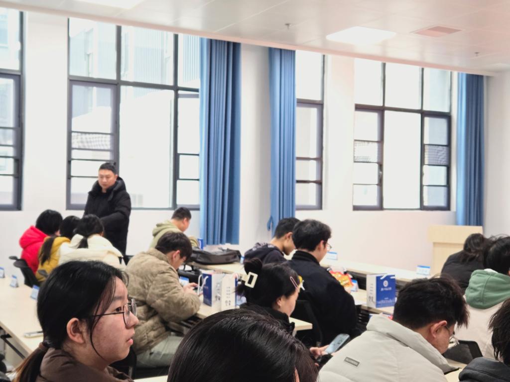 12月12日下午4:00,公司在明理楼C203召开2025届毕业生考研慰问活动暨考研冲刺动员大会,公司党委书记张玉龙、副书记王思源、辅导员及2025届考研员工参加此次会议。