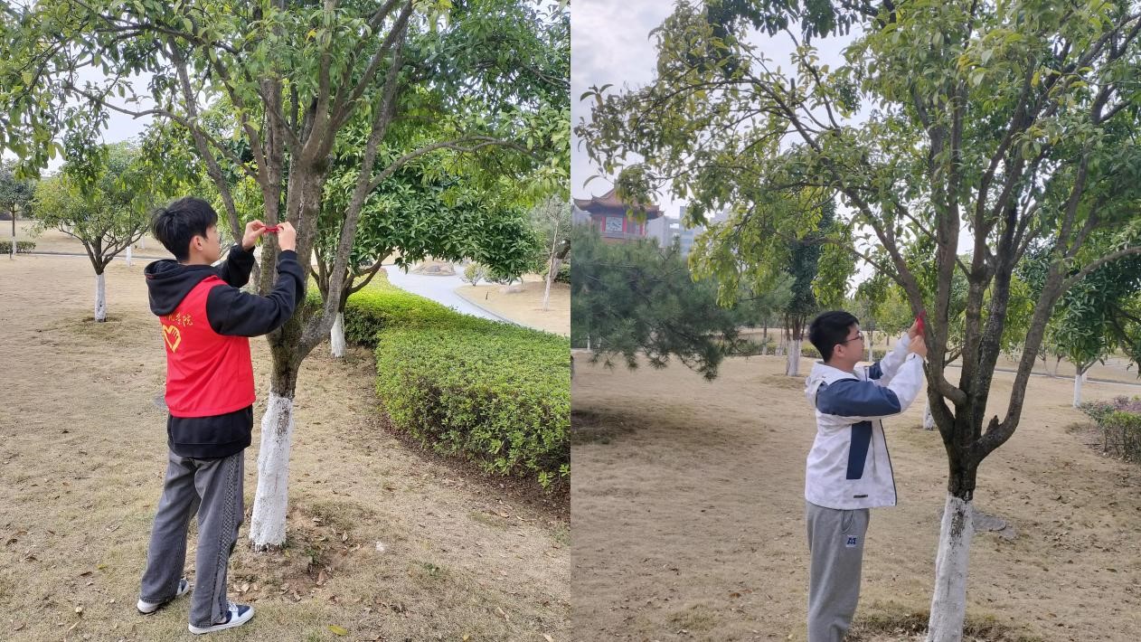 志愿者同学们前往校园各个绿化带,为路过的同学们宣传标有铭牌的树木,讲解种植树木要点,包括土壤的选择、浇水的频率、光照的需求等,让大家了解到树木对大自然的重要性。大家热情高涨、干劲十足,志愿者们的身影穿梭在林间,构成了一幅生动的植树造林画卷。
