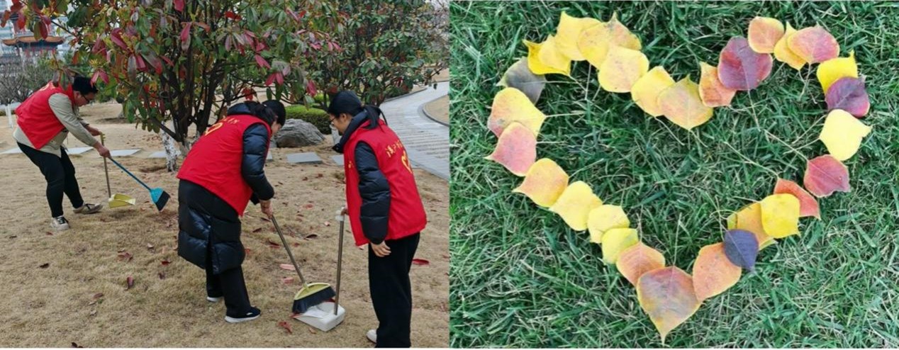 随后,志愿者们积极进行校园清理行动,清扫落叶并收集起来,还利用落叶巧妙地创作出环保艺术作品,并邀请同学拍照打卡,为校园带来了新的生机与活力。他们还通过祈福标签,深情地寄托对美好未来的祝愿,以此方式传递低碳环保的理念,呼吁大家共同关注生态环境。