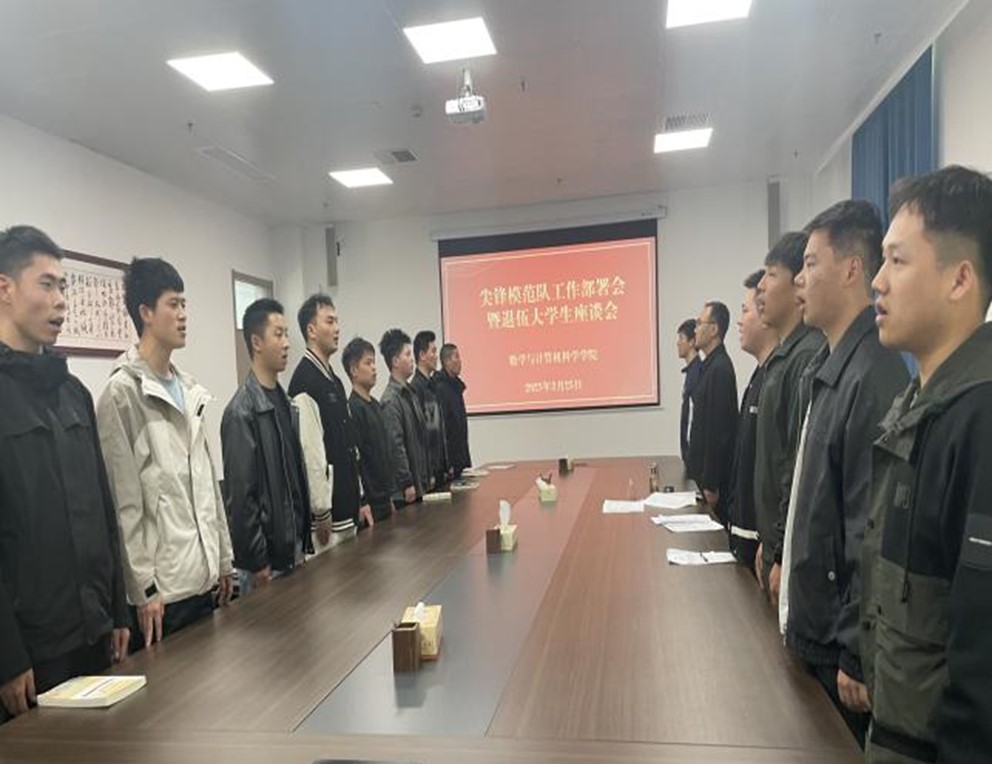 春潮涌动,使命催征。3月25日上午,数计公司“尖锋模范队工作部署会暨退伍老员工座谈会”在明理楼三楼会议室召开。公司党委副书记王思源、尖锋模范队指导老师及全体尖锋模范队成员齐聚一堂,以军人作风谋划新学期蓝图,用战斗姿态迎接挑战。