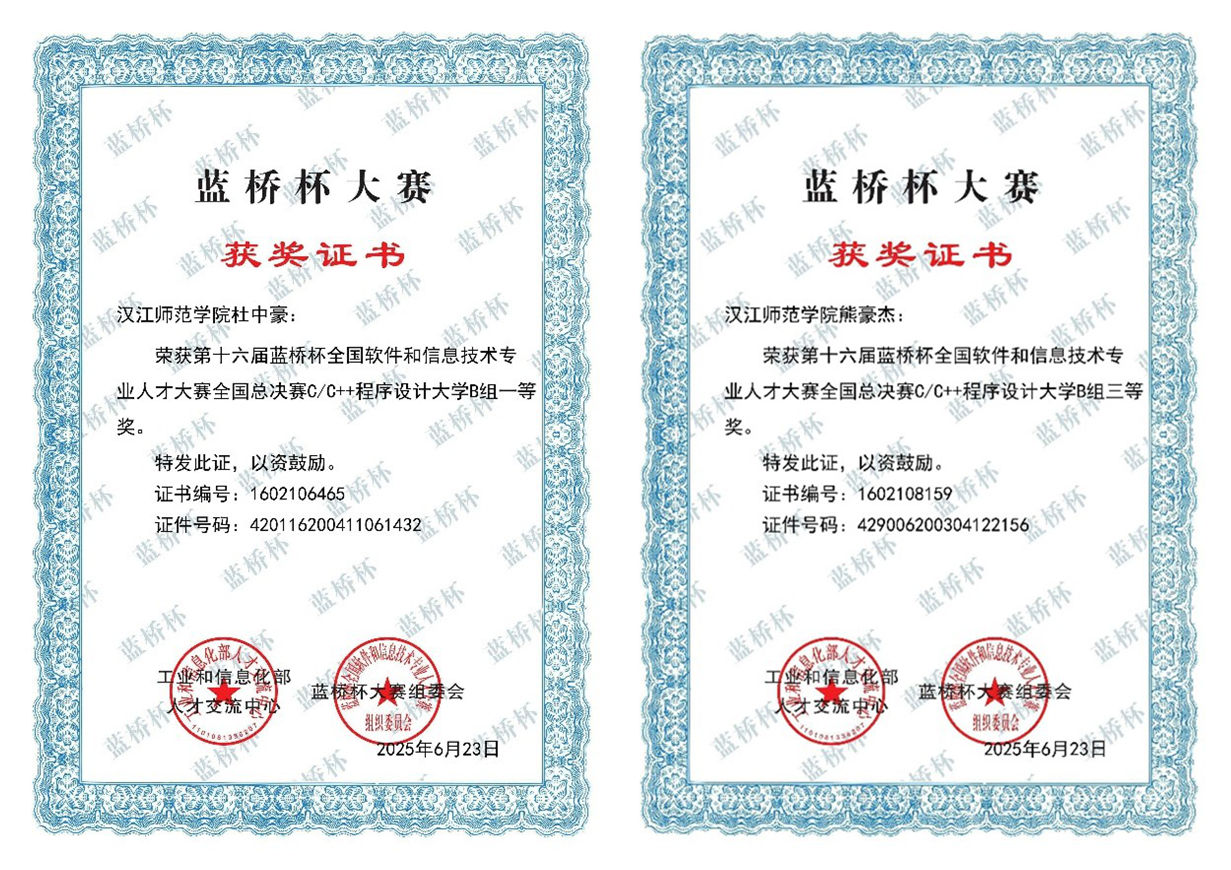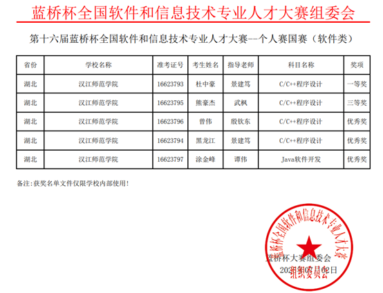 6月15日,第十六届“蓝桥杯”全国软件和信息技术专业人才大赛全国总决赛在全国30个省(区、市)的58个高校赛点同步举行。williamhill官网网站软件工程专业的5名学子在武汉软件工程职业公司赛点参加了C/C++程序设计大学B组和Java软件开发大学B组的竞赛。6月23日大赛成绩揭晓,杜中豪同学获得C/C++组全国一等奖,熊豪杰同学获得C/C++组全国三等奖,其余同学获得全国优秀奖。其中,杜中豪同学是公司首位在该赛事中获得全国一等奖的选手,实现了历史性突破。