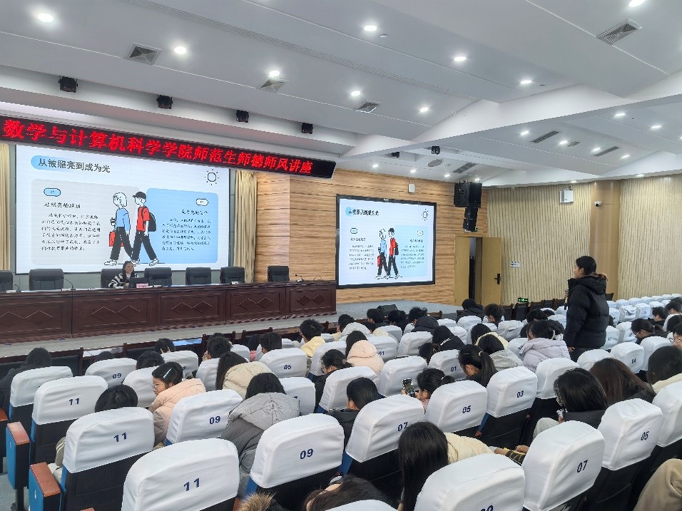 郑锐娟老师以“深耕教学一线,厚植师德初心”为主题,结合自身十六年从教经历,与学弟学妹展开真诚对话。她以“从被照亮到成为光”的成长历程,阐释师德不仅是“四有”好老师的准则,更是“责任、关爱、坚守、担当”的精神内核,是教育的“根”与“魂”。她特别结合数学学科特点,强调教师应以严谨的逻辑和温润的引导,激发员工探究真知的兴趣,在传授知识的同时塑造品格。