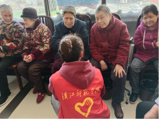 志愿者们分为若干个小组,分工明确。有些陪志愿者陪老人们拉拉家常、讲讲养生小知识,给老人们带去了欢声笑语;有些志愿者则帮助老人捶捶背,使老人变得轻松;有些志愿者到户外和老人聊天,听老人们讲讲过去,讨论当下;还有些志愿者则对老人们进行了采访,细心地询问老人的生活情况。每一句热情洋溢的话语,都寄托着美好的愿望和期盼。志愿者们感悟到,其实养老院老人们最需要的是倾听和陪伴,听听长辈故事,陪伴生活点滴。