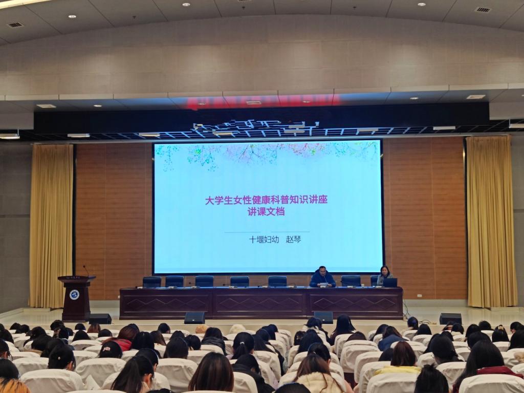 12月21日晚19:00,在学术报告厅举办公司女性健康知识讲座,公司邀请了十堰市妇幼保健院副主任医师赵琴主任主讲,分党委副书记王思源主持,学工办主任董蕾、辅导员柴静以及400余名女同学参加。