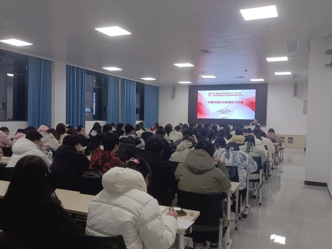 随后,王书记以《中国式现代化的理论与实践》为题给现场的同学们作报告。王书记结合实际案例,从“中国式现代化的关键词和基本概念、中国式现代化的本质要求、中国式现代化要完成的九项任务、扎实推进中国式现代化”四个方面阐释了中国式现代化的理论与实践。