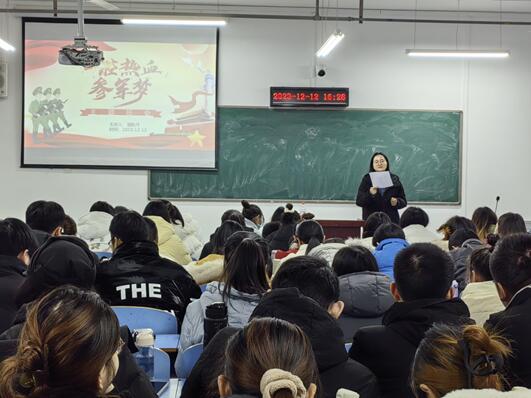 为了更好地让同学们了解征兵政策,鼓励有理想有担当的员工投身军营,报效祖国。12月12日公司在崇文楼A512召开了2020级毕业班“一腔热血参军梦”的主题班会,辅导员邹秋月主持会议。