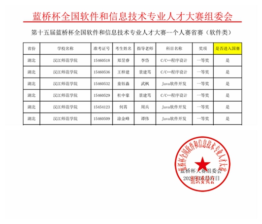 近日,第十五届“蓝桥杯”全国软件和信息技术专业人才大赛湖北省赛区获奖名单发布,公司数计公司学子凭借扎实的专业基础,取得了参赛以来最好的成绩。在大学B组中共荣获奖项64项,其中包括一等奖6项、二等奖20项、三等奖38项。