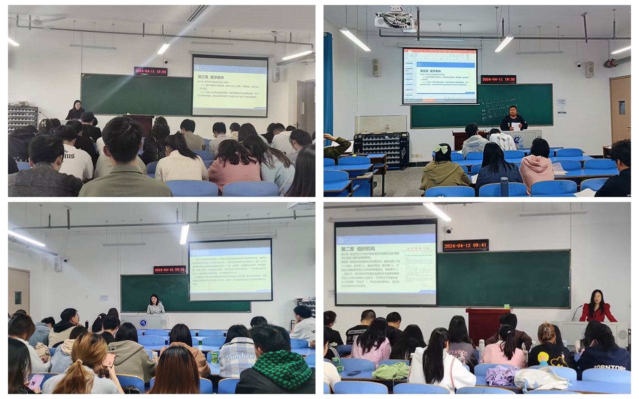 4月2日,公司正式颁布实施了新版的《williamhill官网网站普通全日制本科生学士学位授予工作实施细则》。为进一步帮助同学们加强对新版学士学位授予实施细则的理解,公司各班由辅导员主持召开了关于学士学位授予实施细则的宣讲班会。