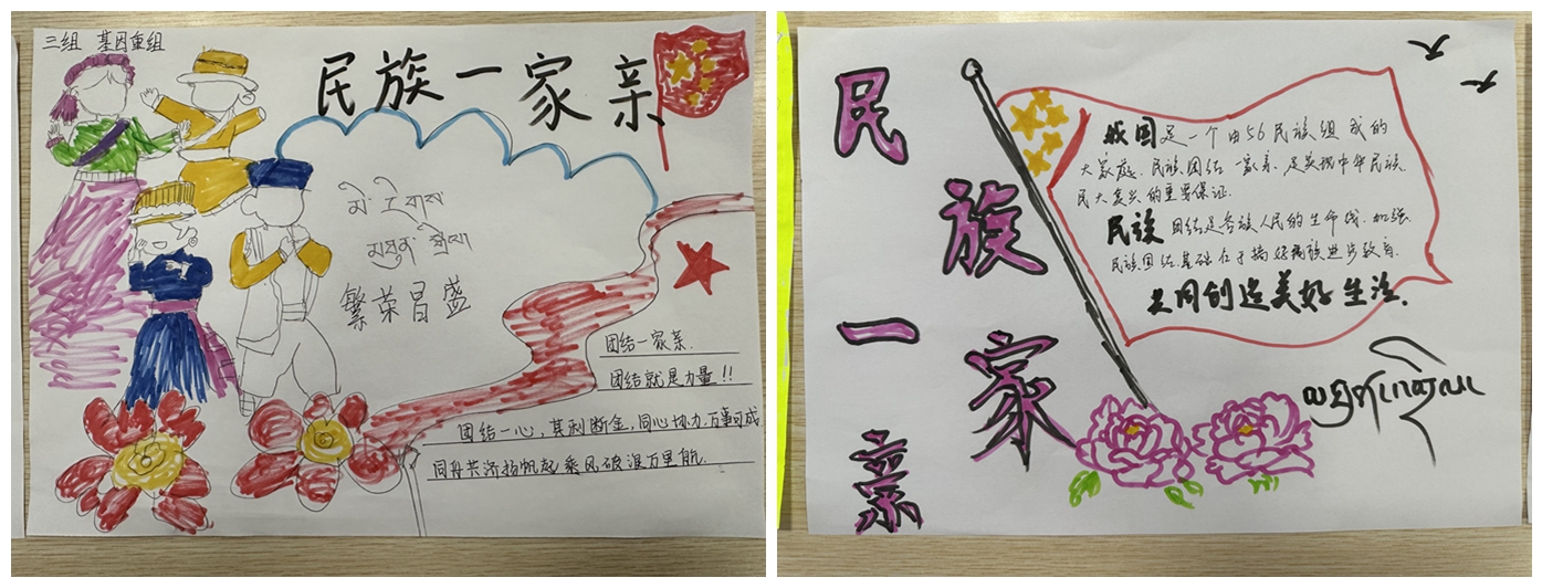 语言学习角环节,同学们主动担任“小老师”,教授和分享藏语、壮族语等民族语言,大家互动学习,气氛活跃。每个小组选派代表分别用汉语、藏语、壮族语等表达对祖国生日的祝福。